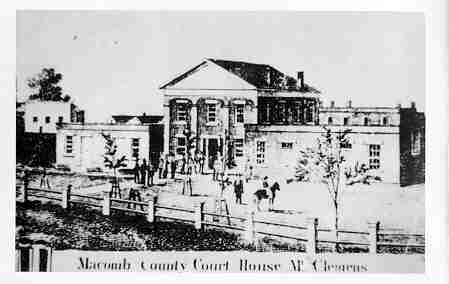 In 1840 came the historic debate in the Legislature concerning the rivalry of the town of Romeo for Mount Clemens' county seat. The city of Utica also contended for the county seat. It was also in 1840 following the debates, that a new courthouse was voted for Mount Clemens to replace the log structure which formerly existed. The county seat dispute continued off and on up to 1879. An artist's rendering below, illustrates the new courthouse of 1840.