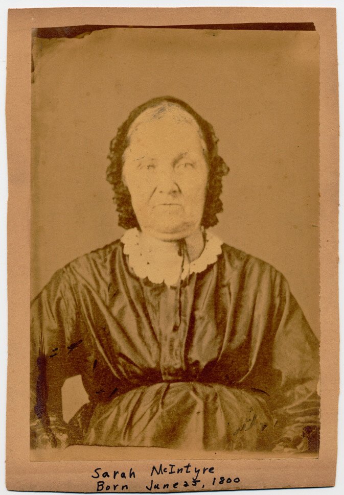 Sarah Elizabeth Gardner, daughter of Thomas Gardner and Susannah Weddell. Born in 1800 in Clark Co., KY and died in 1874 in Milton, Trimble Co., KY. Married Hugh T. McIntire