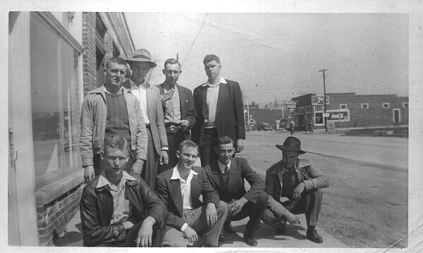 Oscar Aldridge is the third man in the front row. He is the son of Grover and Edna Aldridge. Grandson of George Fallis and Rebecca Aldridge. He was born November 27, 1921 in Trimble County. He served in U S Army Air Corps during WWII and was in the European Theater and was part of the march across Europe to defeat Hitler coming on shore at Utah Beach a day after D-Day as part VII Corps invasion.